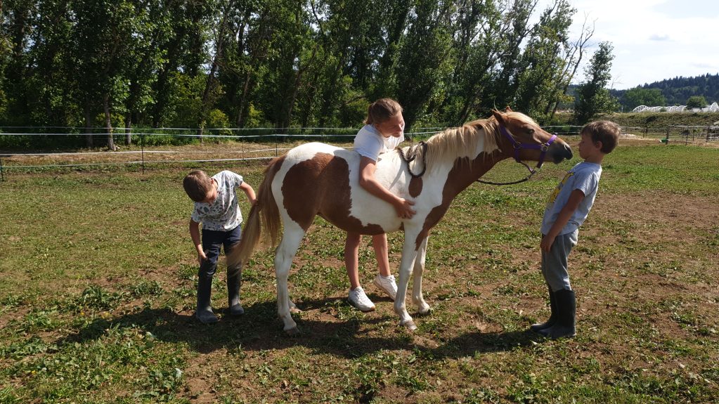 Notre philosophie : le bien-être animal est la priorité du domaine. Tous nos chevaux vivent en troupeau à l'année, avec un libre accès au pré ou à l'écurie. L'apprentissage que nous dispensons (à pied ou monté) repose sur la complicité cheval / cavalier.