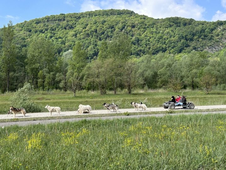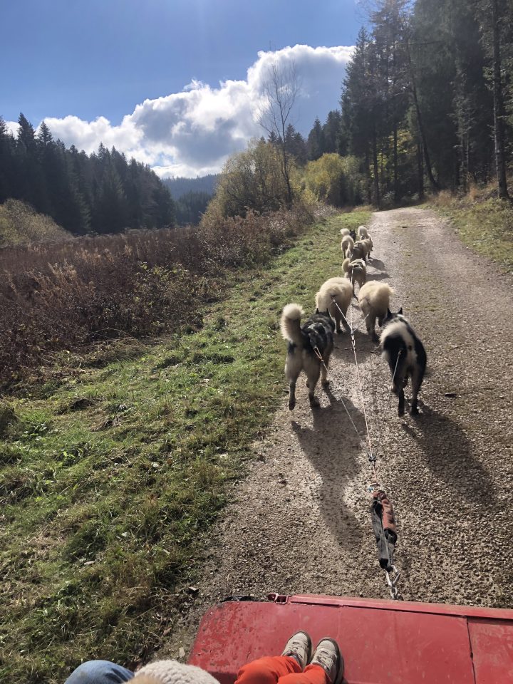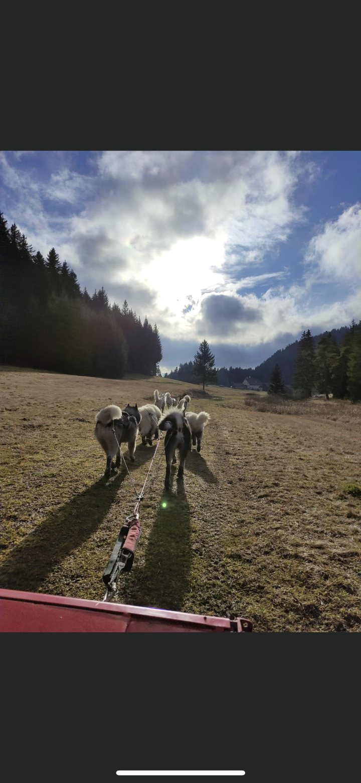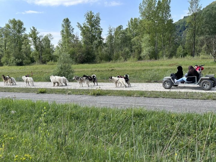 > kart tiré par la meute sur les sentiers de la Praille (20/30min de balade)
