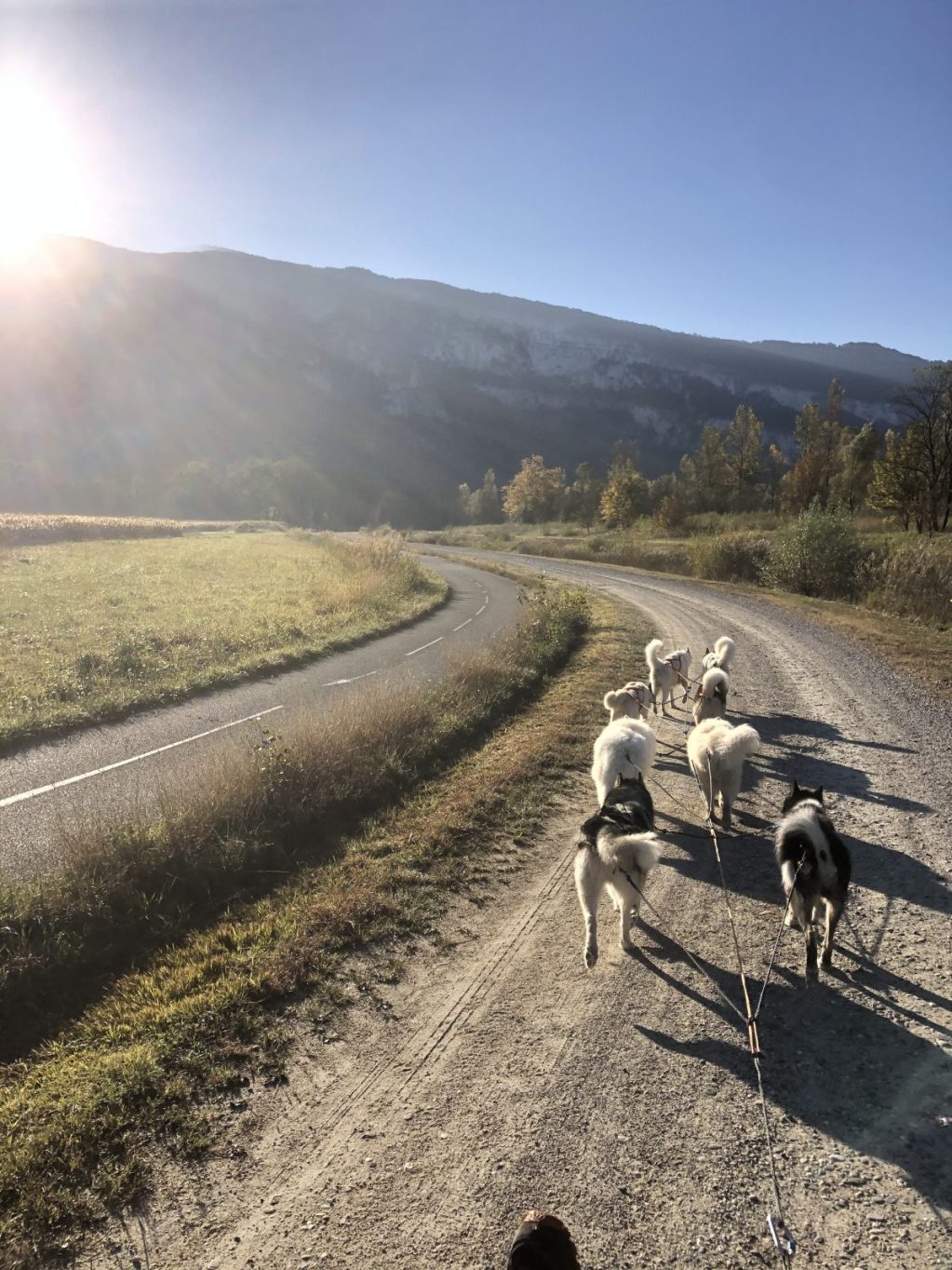 > kart tiré par la meute sur les sentiers de la Praille (20/30min de balade)