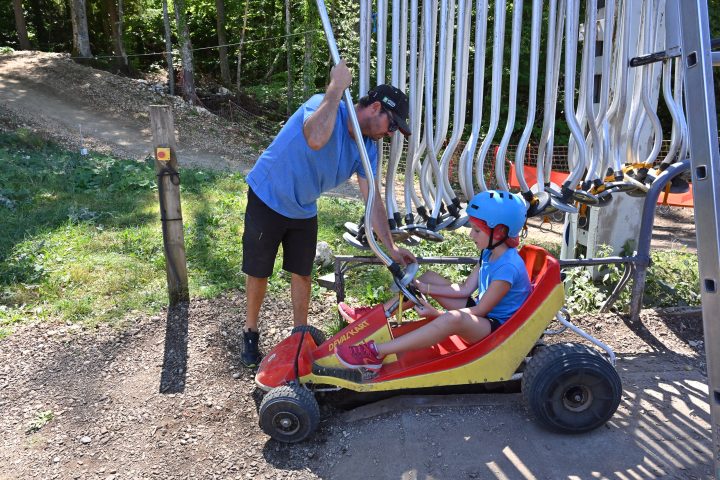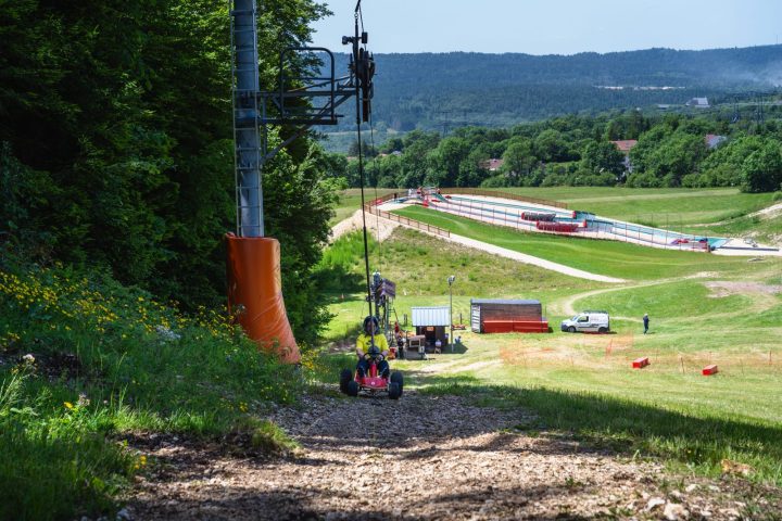 Remontez la piste sans effort avec le téléski puis lancez-vous selon votre cadence sur les pistes avec votre kart sans moteur !