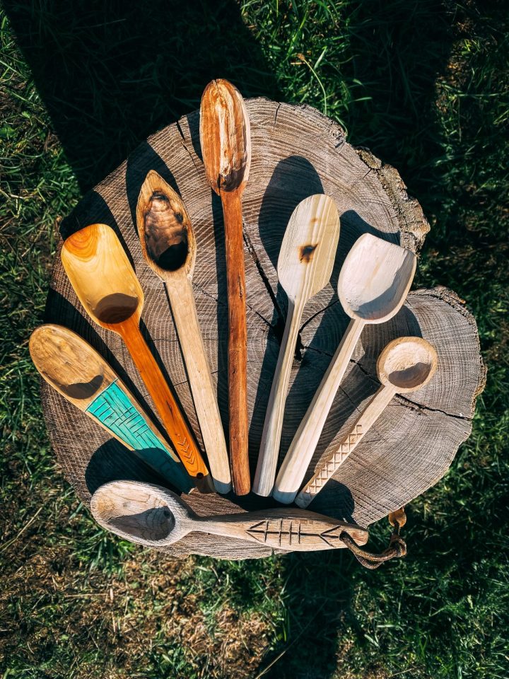 On apprend à faire du feu avec des techniques ancestrales, à sculpter une cuillère ou une kuksa, à faire du savon, de la colle, du cordage naturel, un arc et des flèches etc… Et bien sur du froissartage ! Le froissartage est une technique d’assemblage de bois utilisée depuis des lustres par les paysans pour construire des charrues et outils en tout genre. Nous, on apprend comment fabriquer une chaise, une table, un banc, un tabouret, un maillet, un râteau, un trépied, un abris etc…