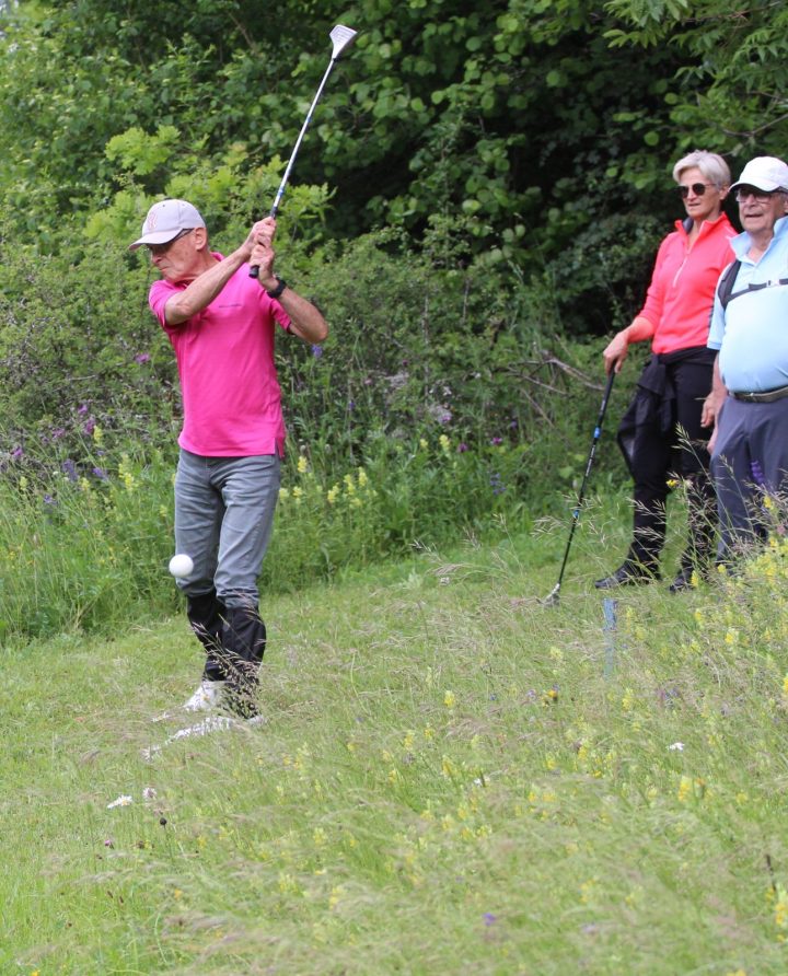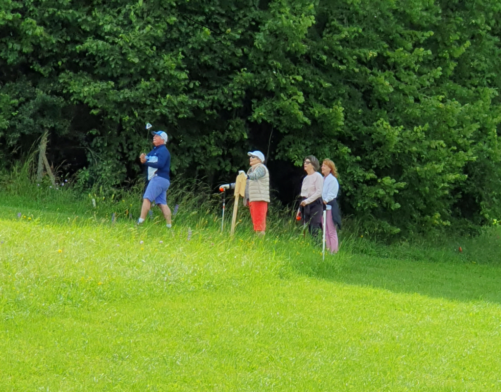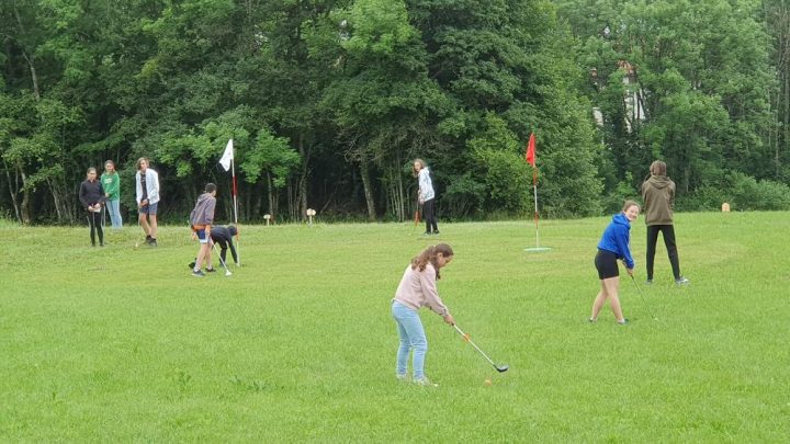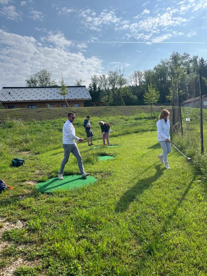 Le swin golf accessible à tous, idéal pour passer un moment amusant et sportif en famille, entre amis ou avec votre entreprise se joue avec les mouvements du golf mais une seule canne et une balle plus grosse. L'initiation est prévue pour les débutants.