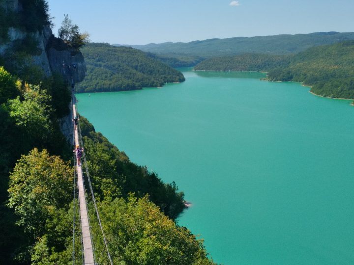 Une via ferrata facile, idéale pour la découverte de l'activité avec vue sur le superbe lac de Vouglans.