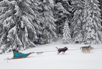 Passagers dans le traîneau tracté par les chiens, vous contemplerez les paysages enneigés qui