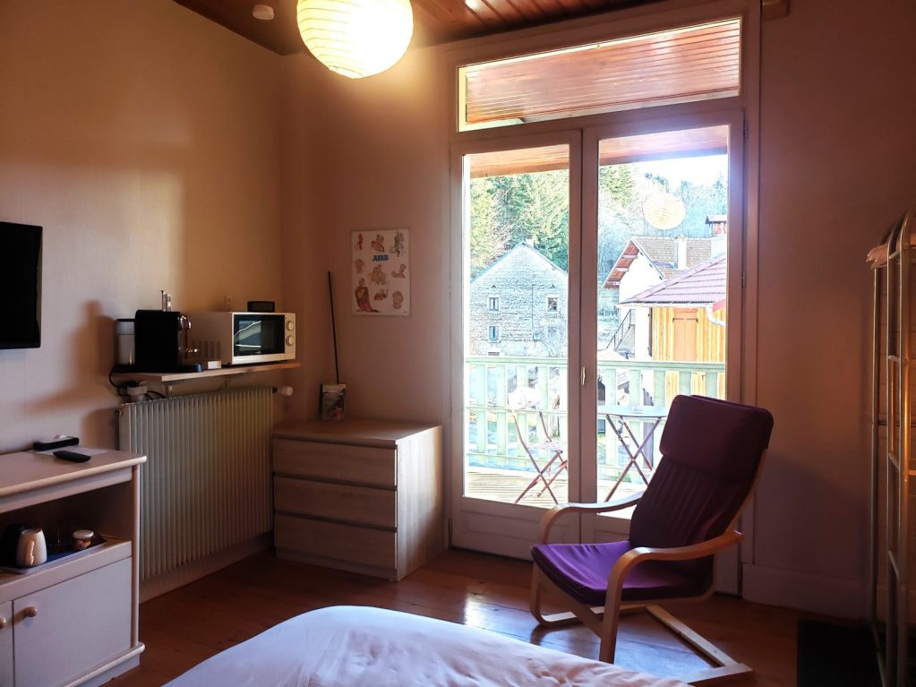 La chambre est située à proximité immédiate des chemins de randonnées et à 5 min en voiture du centre d'Hauteville.