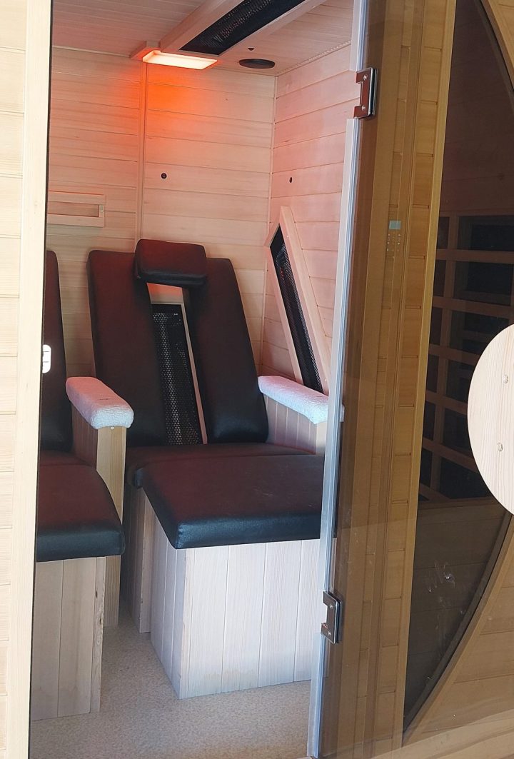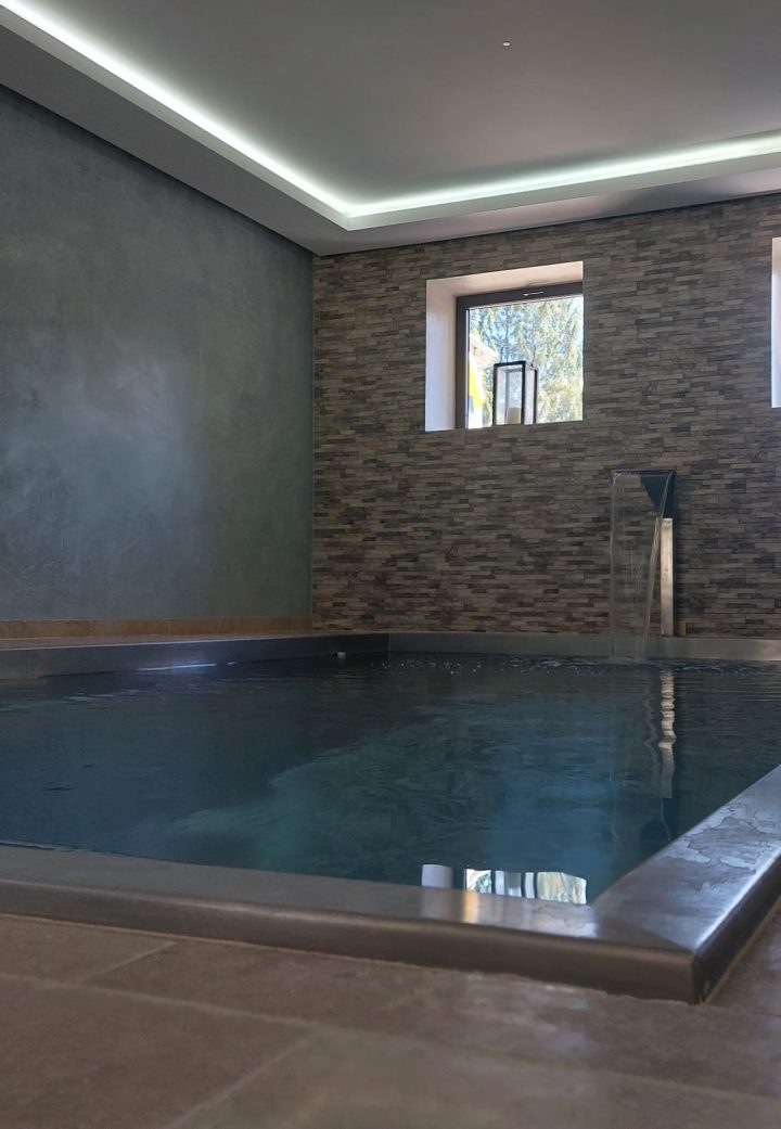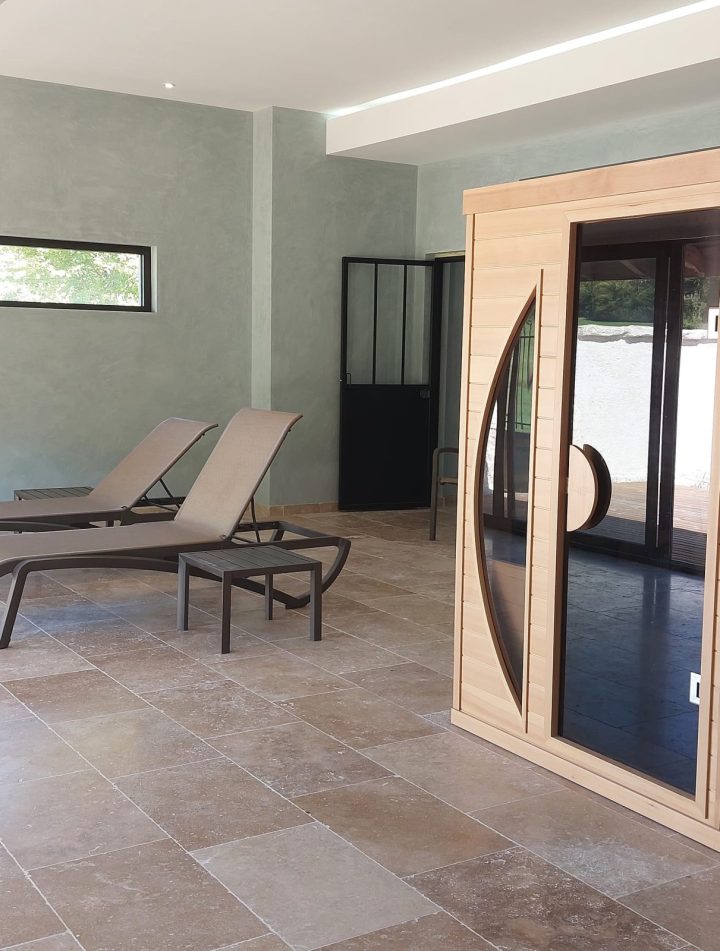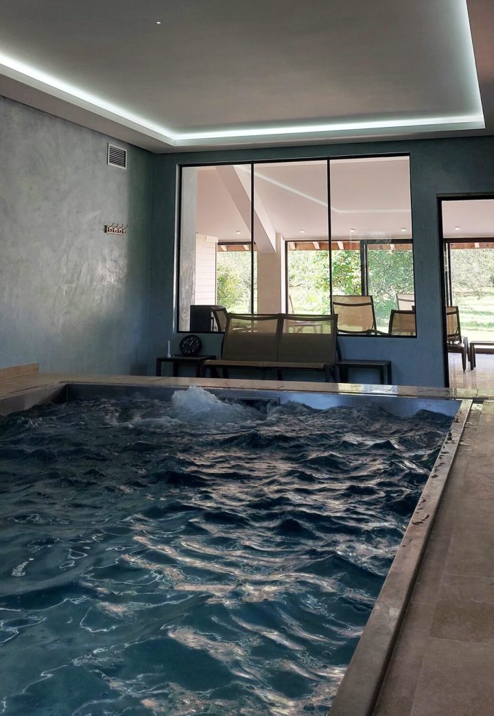 Le spa de 100 m² comprend une piscine intérieure, une double cabine infra-rouge, une douche sensorielle de 2m² avec luminothérapie, son et jets d'intensités différentes aux effets pluie ou torrent.