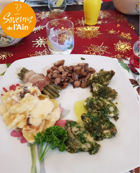 Des repas conviviaux, traditionnels et chaleureux vous sont proposés de 25 à 45 Euros par personne (hors boissons & alcools), le tout élaboré par un véritable Chef cuisinier natif du HAUT-BUGEY ! dégustez les délicieux plats comme la fondue jurassienne, la tartiflette de nos montagnes, les quenelles de brochet aux écrevisses sauce Nantua, le poulet de Bresse à la crème & aux morilles, ou encore les gâteaux de foie de volaille... le tout provenant de producteurs et d"éleveurs locaux.