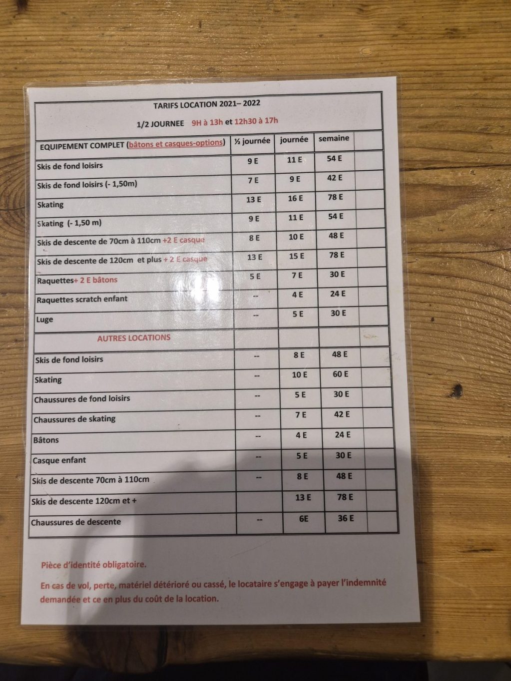 30% de réductions sur la location de matériel pour les personnes logeant au gîte.