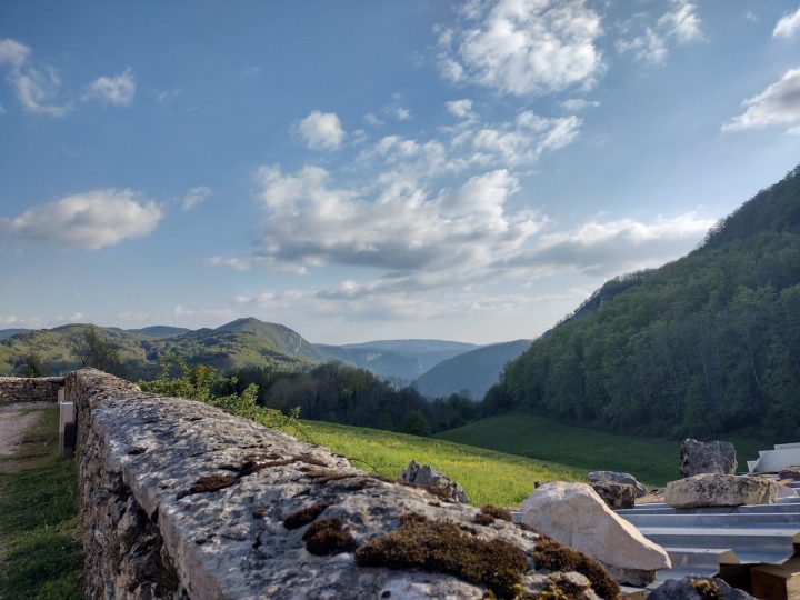 Le jardin du Cacl est paisible et offre un point de vue privilégié sur les massifs rocheux et boisés du Haut Bugey. Des tables sont à disposition pour pique-niquer et passer un moment hors du temps.