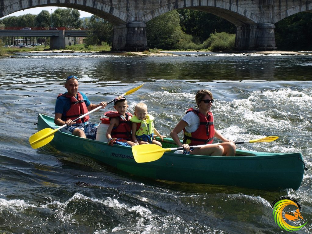 6€ pour l’enfant (de 5 à 11 ans) à condition qu'il soit assis sur la troisième place du canoë au milieu (modèle canoë 2/3 place).
