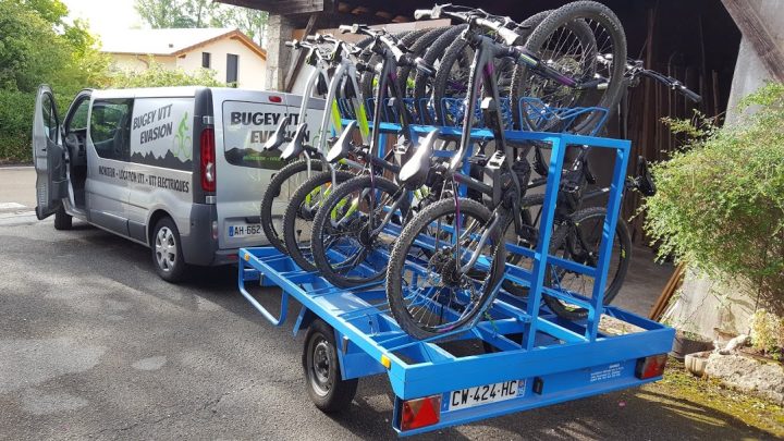 Location de VTT électrique adulte et junior, VTC électrique, VTT adulte et enfants et remorque vélo.
