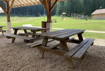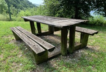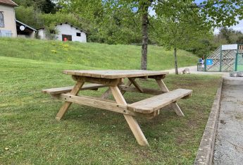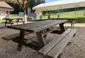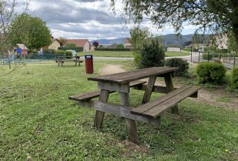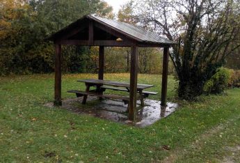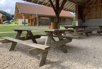 La commune de Outriaz est équipée de deux aires de pique-nique. Celle-ci est en bois avec un
