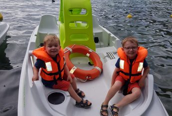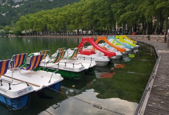 Location d'embarcations à pédales 4 ou 5 places à la demi heure ou à l'heure. Promenade sur