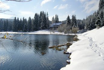 Auberge Logis en montagne, entre Nantua et Oyonnax, blottie au bord d'un lac dans un écrin de
