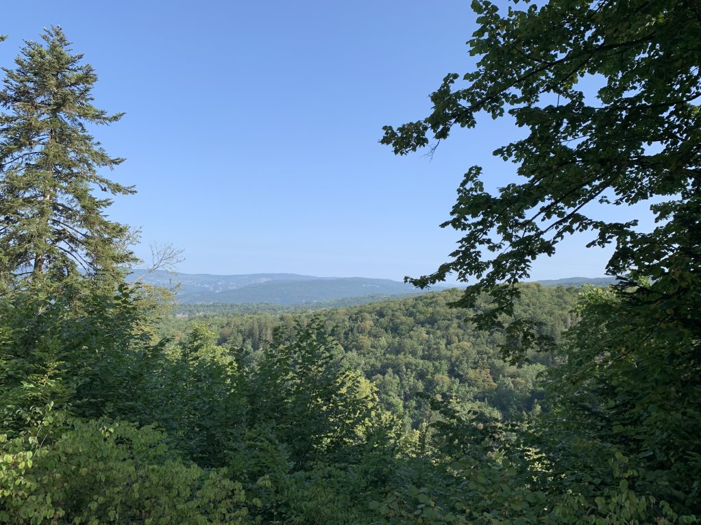 > Monter la rue du Maquis, puis en haut suivre circuit pédestre / direction Colet de Chatel, emprunter à droite les marches pour s'engager dans une ancienne voie romaine assez glissante. Après le captage prendre à gauche pour monter vers la forêt.