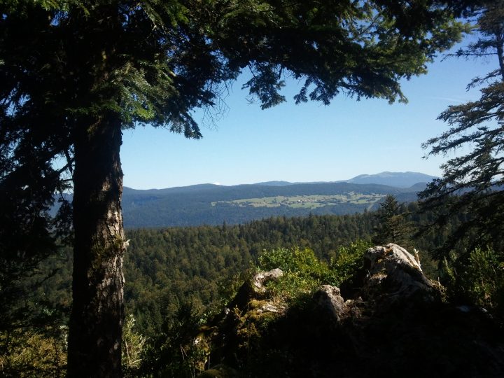 > Au Collet de Chatel, prendre à droite direction Cul de Lary (erreur, lire " la Chaux"), puis prochain carrefour prendre en face direction Cul de Lary (erreur, lire " la Chaux") pour rejoindre la route goudronnée que vous devez suivre jusqu'au bout. Puis continuer sur la route forestière de la Chaux. A la fin de cette route forestière, continuer dans une montée rocheuse (rester côté gauche).