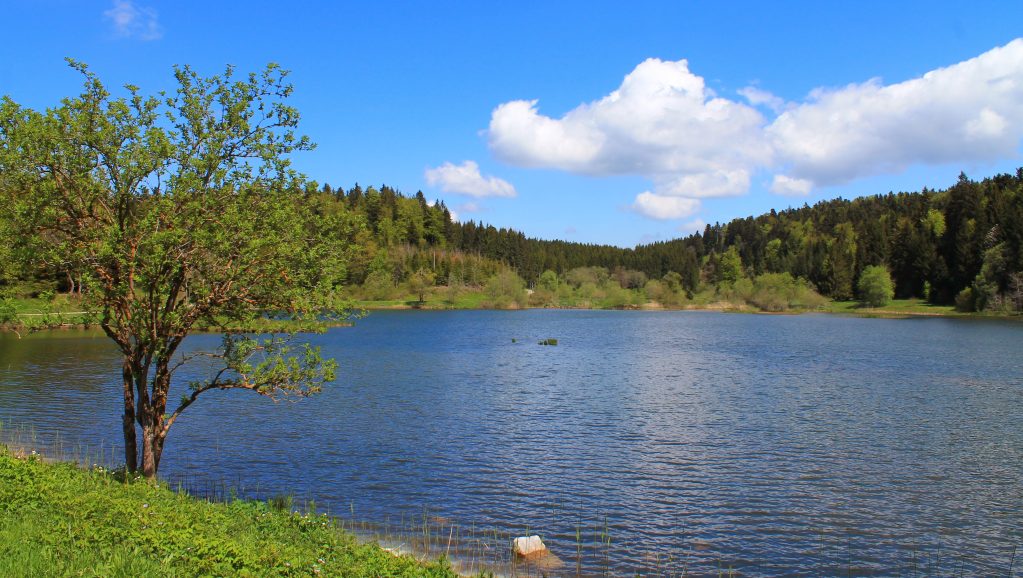 Peu avant d'arriver sur le village de Brénod, au retour, prenez le temps d'admirer la vue sur les étangs Marrons sur votre droite !