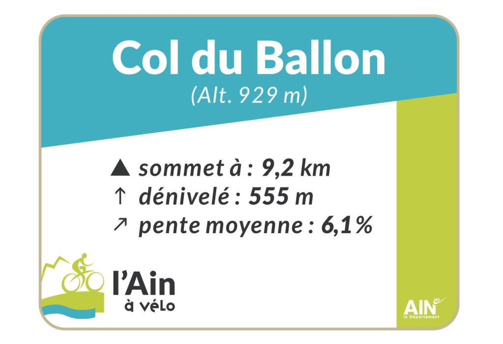 Le col du Ballon (929 m) en bordure du Plateau d'Hauteville vous promet une montée de 9 km depuis Tenay par le versant ouest qui présente des passages très pentus et irréguliers.