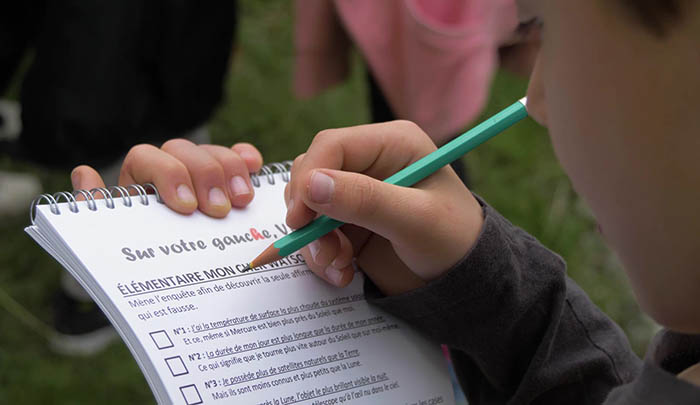 Le livret d'accompagnement du sentier, conçu par l'équipe de l'Observatoire, comprend 60 pages d'énigmes, de charades et de questions, pour lesquelles vous trouverez les réponses sur les totems le long du sentier.