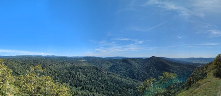 Profitez du panorama avec la vue sur le Mont Blanc avant d’entamer la descente, tourner à gauche en épingle au km 7.6.