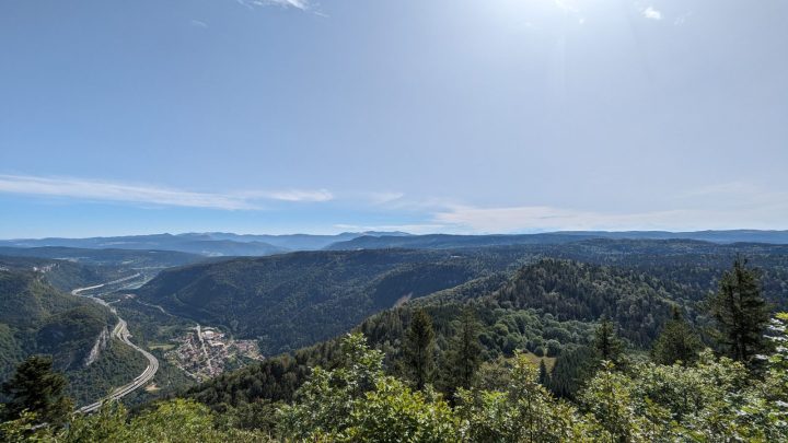 Vous trouverez au km 2 le superbe point de vue des « Doigts du diable » au-dessus du Lac de Nantua, continuer tout droit jusqu’au km 3.5 et tourner à gauche, profitez des sentiers très variés sur ce tronçon avec plusieurs points de vue sur le dernier km d’ascension jusqu’au km 7.3 sommet des Monts d’Ain.