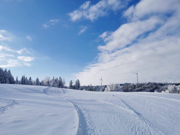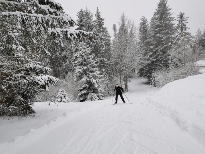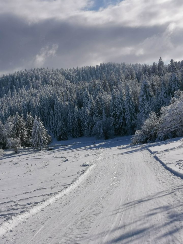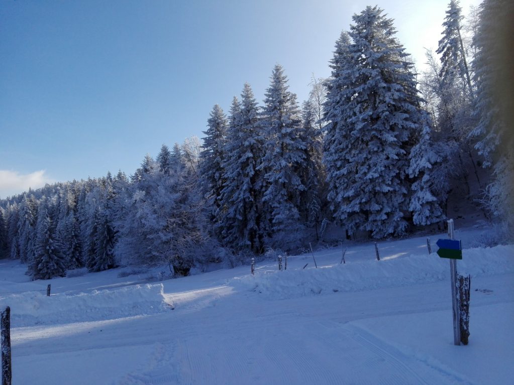 La piste bleue promet de satisfaire tous les types de skieurs : du plaisir et de la technique pour tous les niveaux sur une boucle de 7km qui alterne tous les paysages de notre plateau (passage en forêt, dans les combes et en hauteur dans les prés avec vue dégagée)