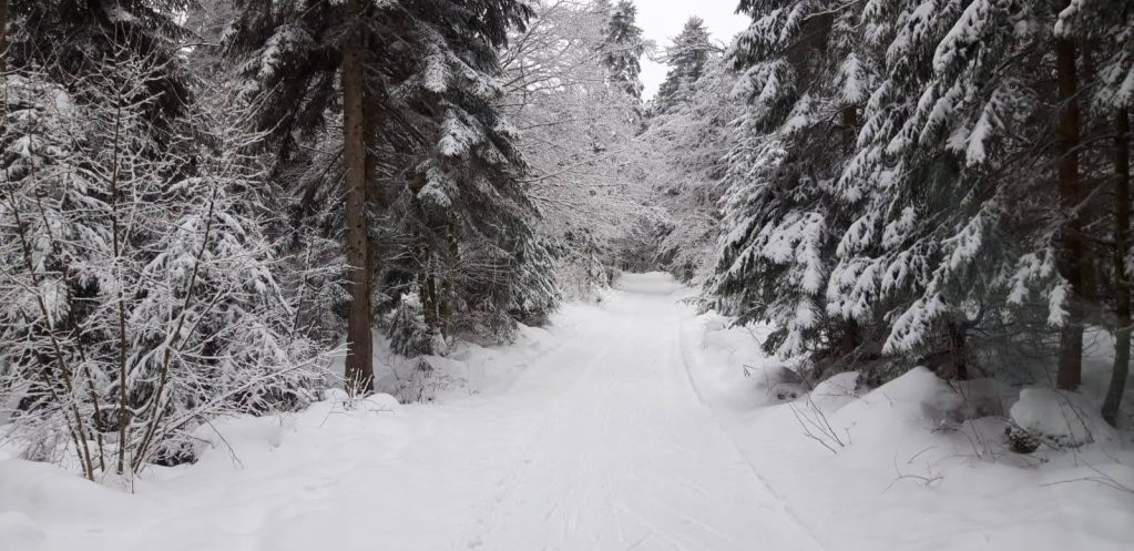 départ au centre du village aux abords de la piste de luge, vous profitez d’une piste large et ouverte avec vue sur le village avant de vous attaquer à un plat montant. Apres une première traversée de route, vous abordez une combe en plat descendant avant de rejoindre le col du sentier après une piste montante assez technique.