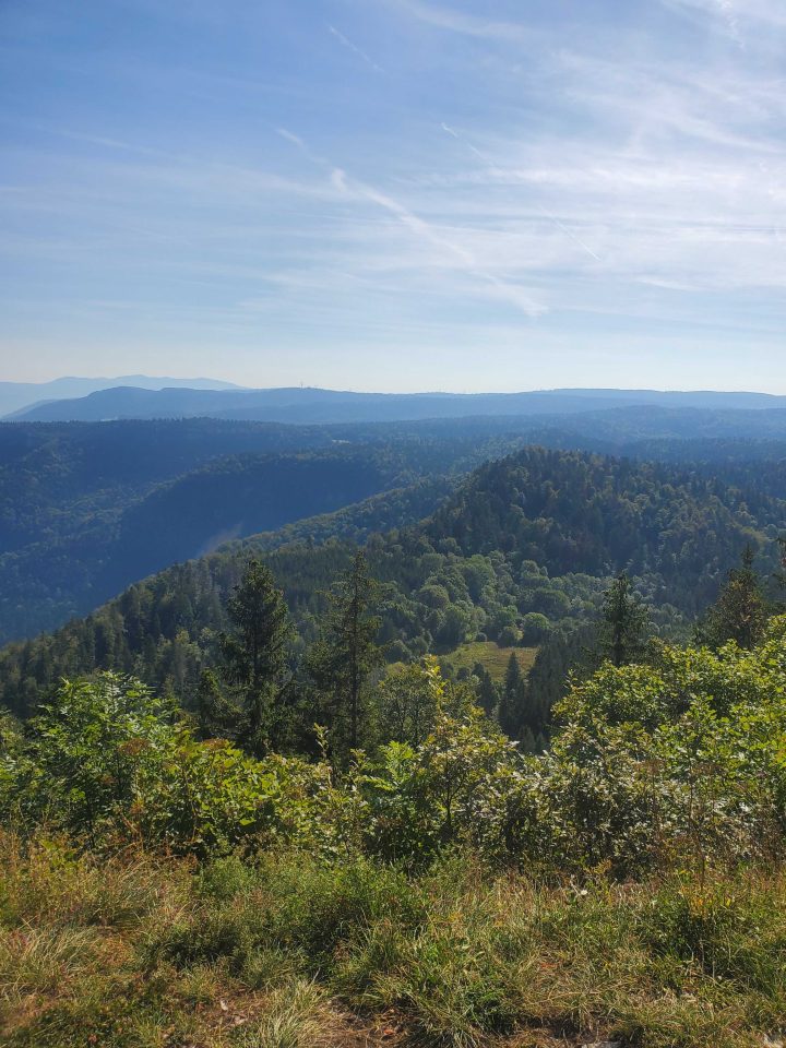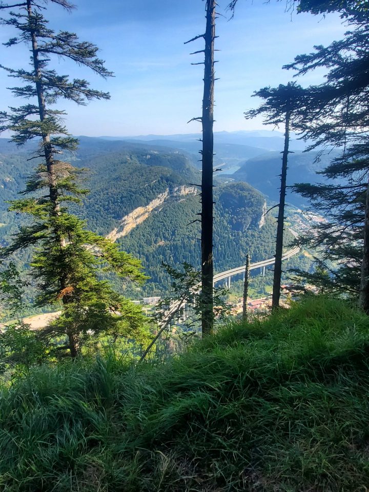 5.Continuer la boucle sur la descente en longeant un sentier qui suit la falaise. La forêt laisse peu à peu la place aux pâturages.