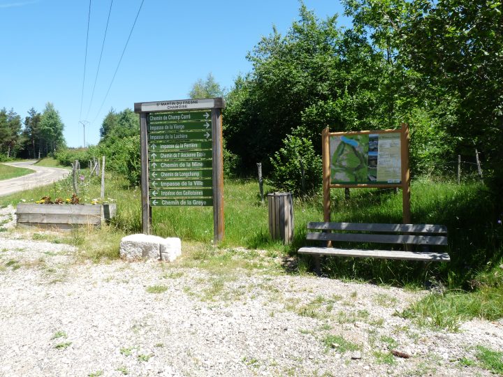 6.Après être passé devant les quelques maisons du hameau de la Craie aperçues sur la droite, rejoindre le chemin goudronné et le prendre à gauche. Après 5 min de marche, au croisement, prendre à droite vers les maisons. 5 min plus tard, on atteint un carrefour de plusieurs petites routes.