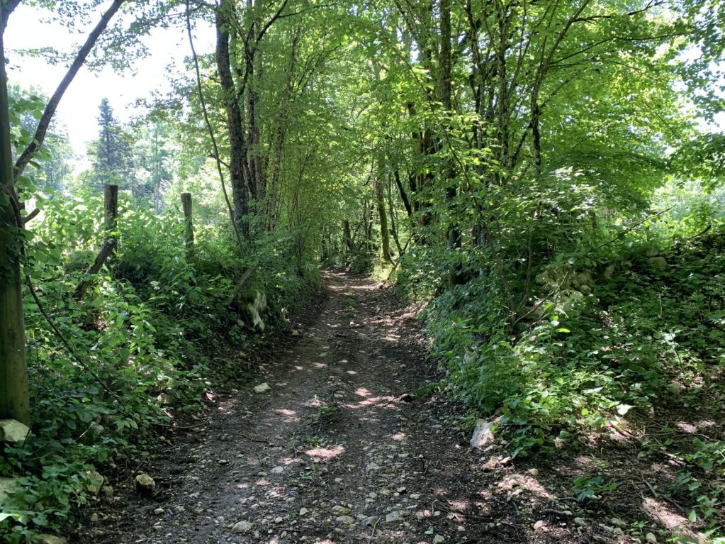 Petit crochet à droite puis à gauche et on aboutit à une très large piste forestière longeant un bois de sapins.