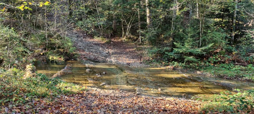 Environ 100m plus loin, prendre à droite le "chemin neuf" sur 2.4km et continuer jusqu'à une route forestière goudronné. La quitter et basculer à droite sur un chemin.