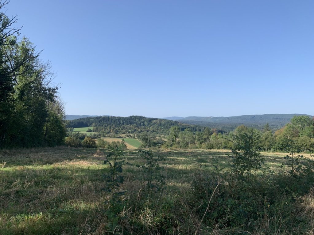 Déboucher à nouveau sur une route forestière goudronnée. L'emprunter par la gauche sur 200 mètres pour découvrir, sur le bord gauche du chemin, au sommet d'une butte, la borne des trois Cantons.