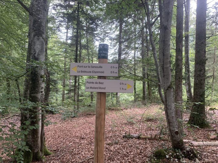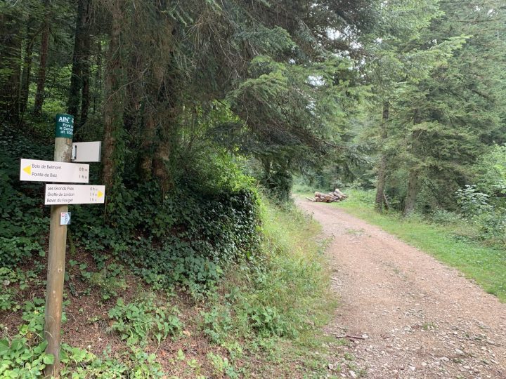 Du Mollard-Rond poursuivre la descente en passant par la Pointe du Biez (968m). Continuer la descente sur la crête du bois de Belmont.
