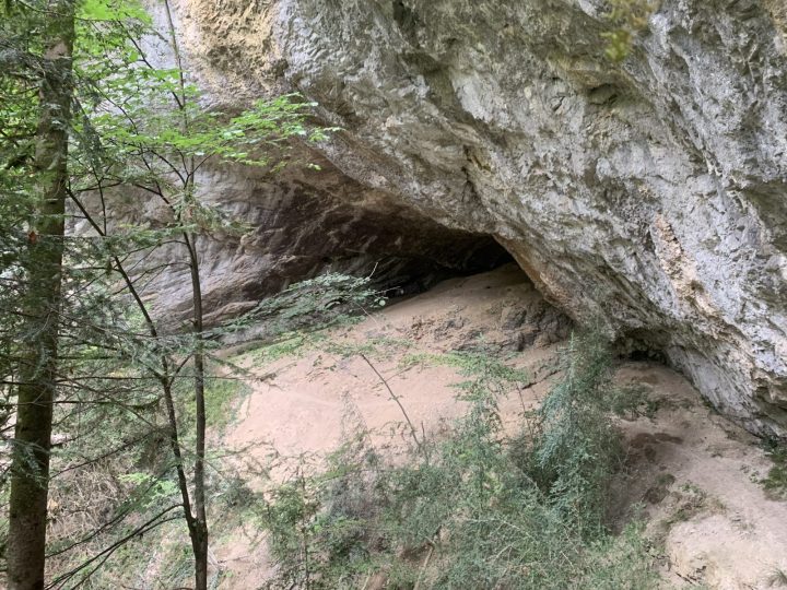 De la grotte, revenir au carrefour, prendre à gauche un chemin en balcon et progresser sur 400m. Au bout du chemin, bifurquer à gauche sur une pente assez raide sur 500m jusqu'au prochain croisement.