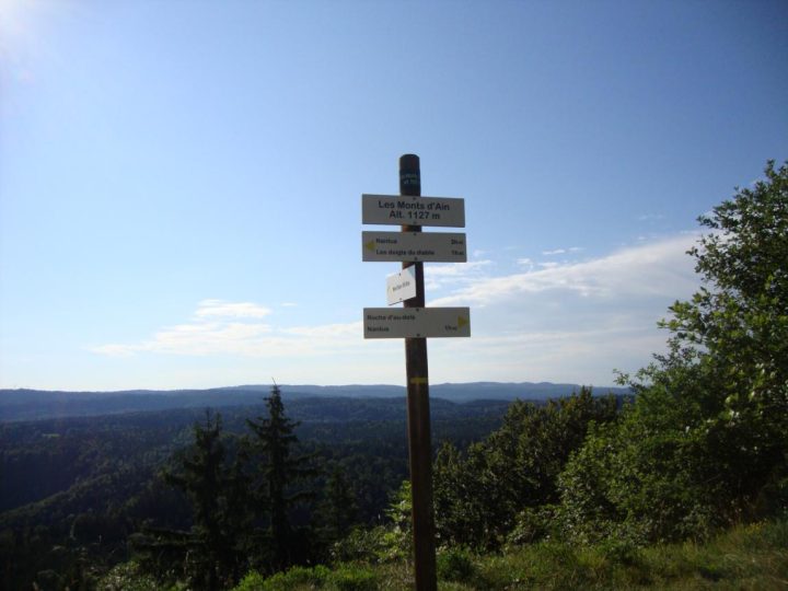 Ce circuit entraîne les randonneurs les plus sportifs à travers la forêt jusqu'au panorama du Mont Blanc au sommet des Monts d'Ain (1127m). Au cours de l'ascension, vue plongeante sur le lac de Nantua depuis le promontoire des Doigts du Diable.