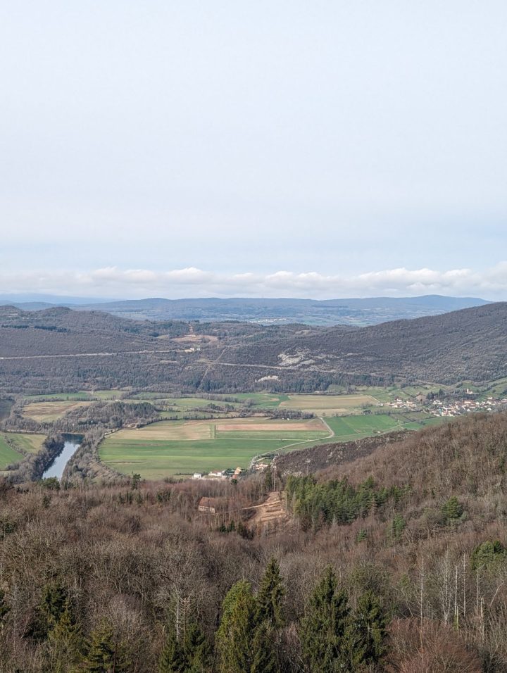 Découvrez des points de vue imprenables sur la rivière d'Ain, le barrage de Coiselet, le village de Coisia et les ruines du château d'Oliferne.