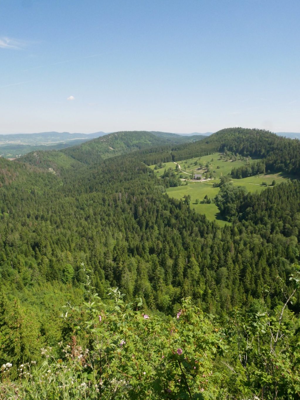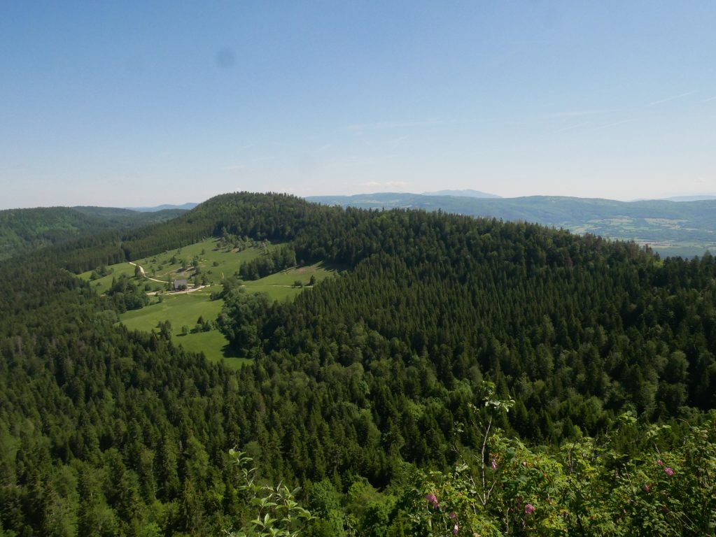 8. Descendre la route sur 100 m environ et, au croisement avec une autre route continuer sur celle de droite. A 1km environ la route débouche sur une large clairière avec vue sur l'étang des Lésines. Emprunter le petit sentier qui monte sur la droite et qui traverse l'arboretum. A la sortie, descendre le chemin de gauche pour regagner le chalet de départ du téléski. Rejoindre le village et le parking de départ par le même itinéraire qu'à la montée. (sentier sur la gauche en face du transformateur, puis encore à gauche en direction de l'Eglise).