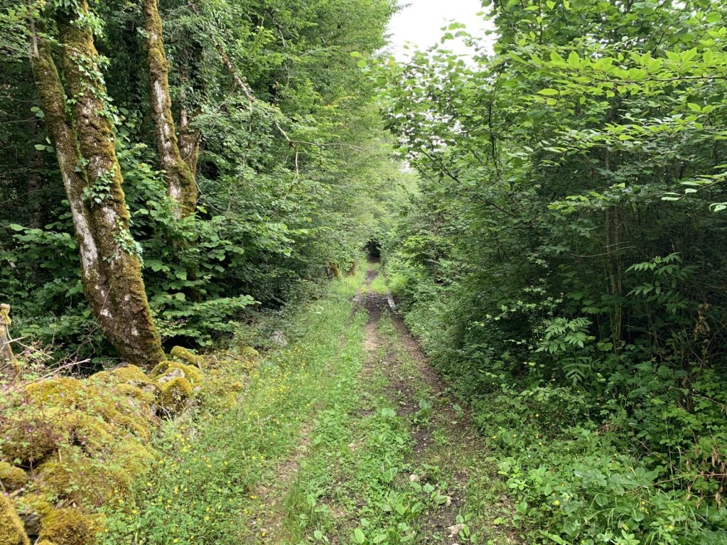 Traverser la D53, se diriger vers le cimetière. Emprunter le chemin à droite du cimetière et descendre vers la D53a. Au niveau de la route goudronnée, bifurquer à gauche, longer les ruines de l'abbaye Saint-Sulpice. Passer au bas de la maison forestière, suivre le chemin de Saint-Sulpice qui monte en pente raide à travers la forêt de Jailloux. Le sentier se stabilise horizontalement puis horizontalement puis redescend sur 2 carrefours.
