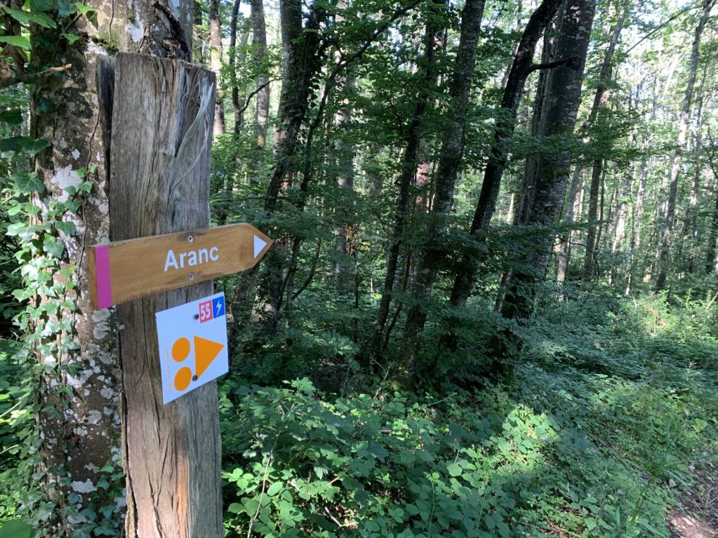 11. Suivre par la droite pour rejoindre Aranc. Ignorer les deux premières routes à gauche mais emprunter la troisième en face de la Fruitière.