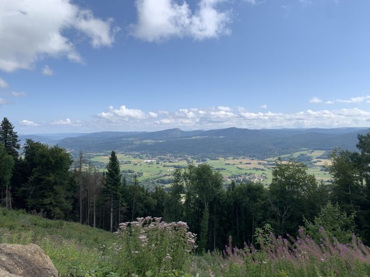 2. Partir à gauche, traverser le hameau de Talipiat et continuer par la petite route. Couper la D57, monter à Corcelette tourner à droite et sortir du hameau. Le chemin prend de la hauteur et atteint une bifurcation.