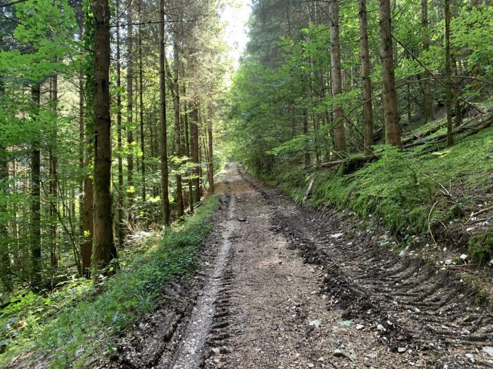 Environ 500 mètres plus loi, possibilité de variante en prenant à gauche le chemin forestier qui devient très raide à l'approche de l'antenne relais. Sans jamais atteindre le sommet de la crête, il reste à niveau puis amorce la descente. Suivre la D 57 à gauche sur 150m.