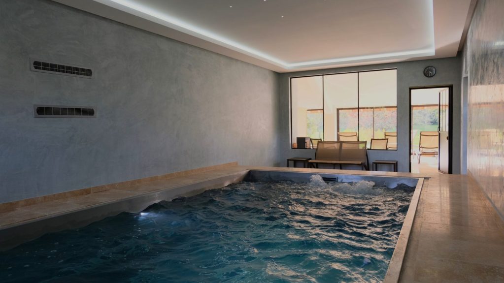 Le tout nouveau spa du château de Maillat comprend une piscine intérieure à remous, une double cabine à infra-rouge et une douche sensorielle avec luminothérapie, sons et jets d'intensités différentes aux effets brume, pluie, torrent...
