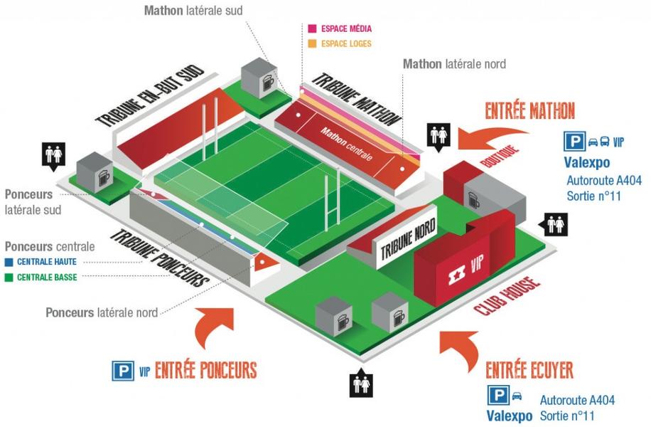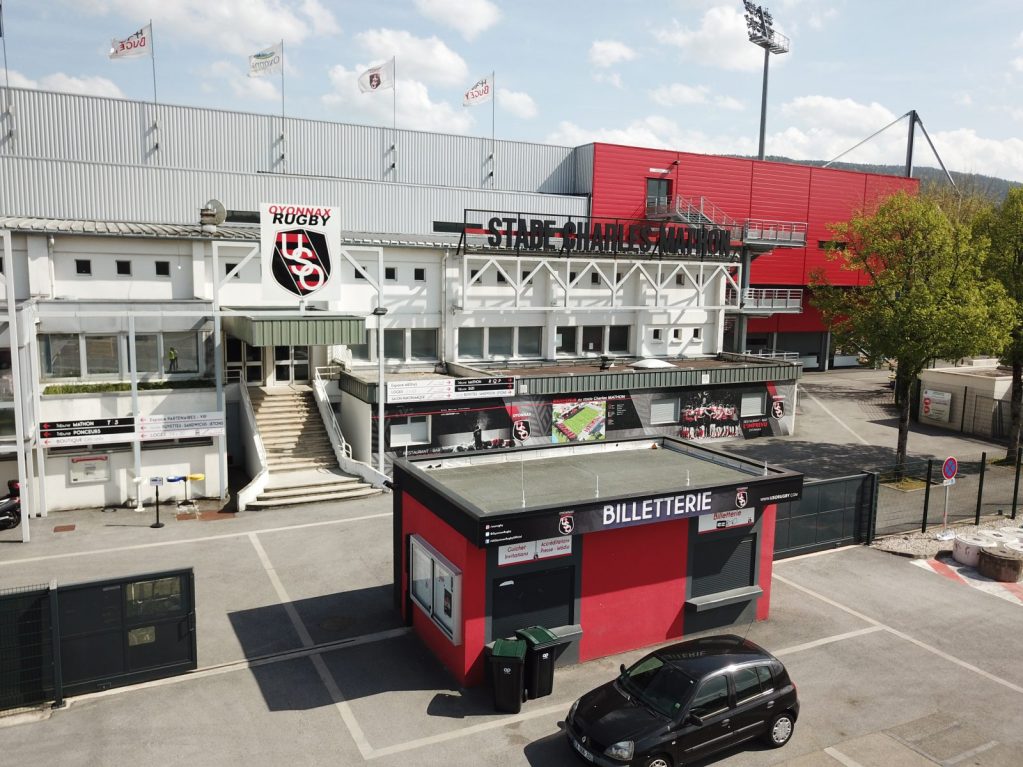 Propriété de Haut-Bugey Agglomération, le stade Charles Mathon est un établissement recevant du public de plein air pouvant accueillir jusqu’à 11 400 personnes, dont 10 230 places assises.