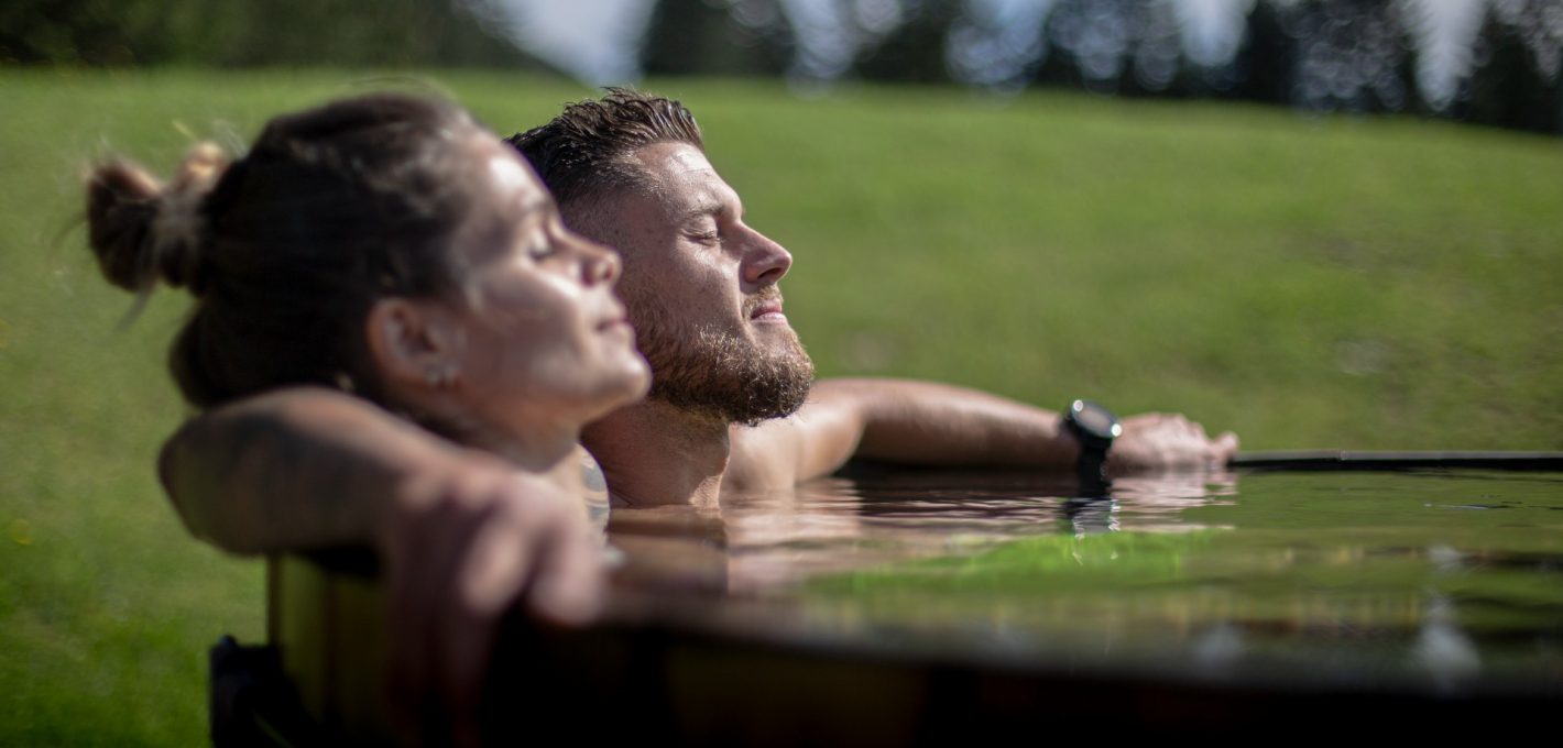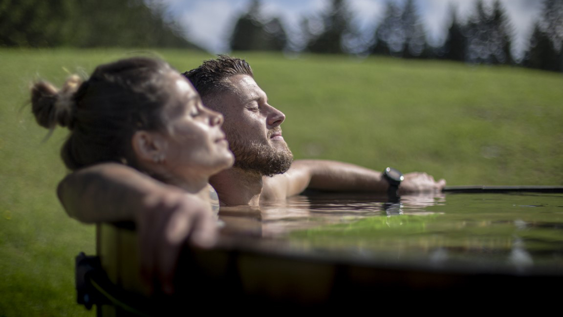 La faim se faisant sentir, nous nous sommes arrêtés au Gîte La Fora pour déguster une assiette aussi goûteuse que saine avec des produits frais et locaux cuisinés avec amour. Ainsi revigorés, nous voilà partis à La Praille, le site nordique de Plateau d’Hauteville, à 1100 mètres d’altitude. On respire un grand coup et on part pour une cani-rando. La force de traction des chiens du grand Nord nous donne une sensation de vitesse incroyable. Après cette expérience grisante, nous nous sommes glissés dans un bain nordique. Ça nous a fait un bien fou !