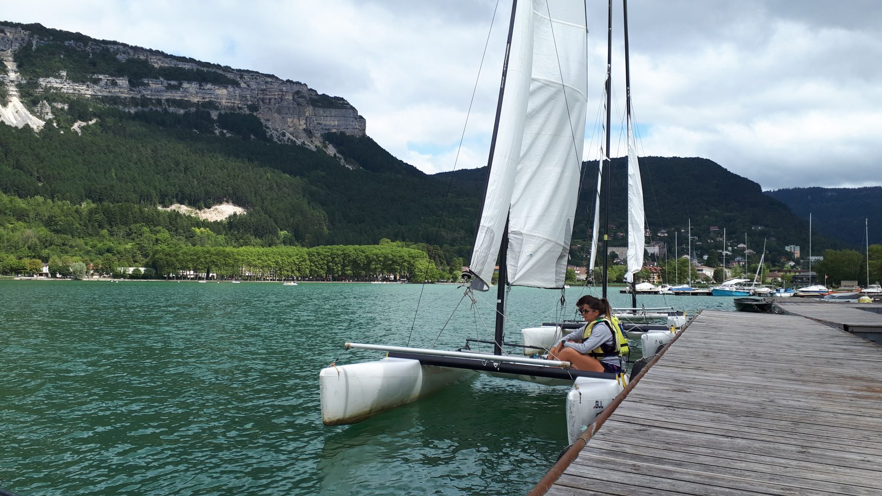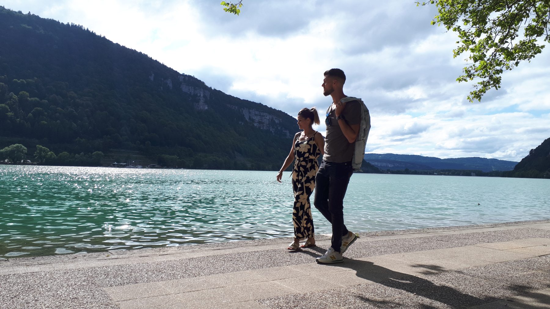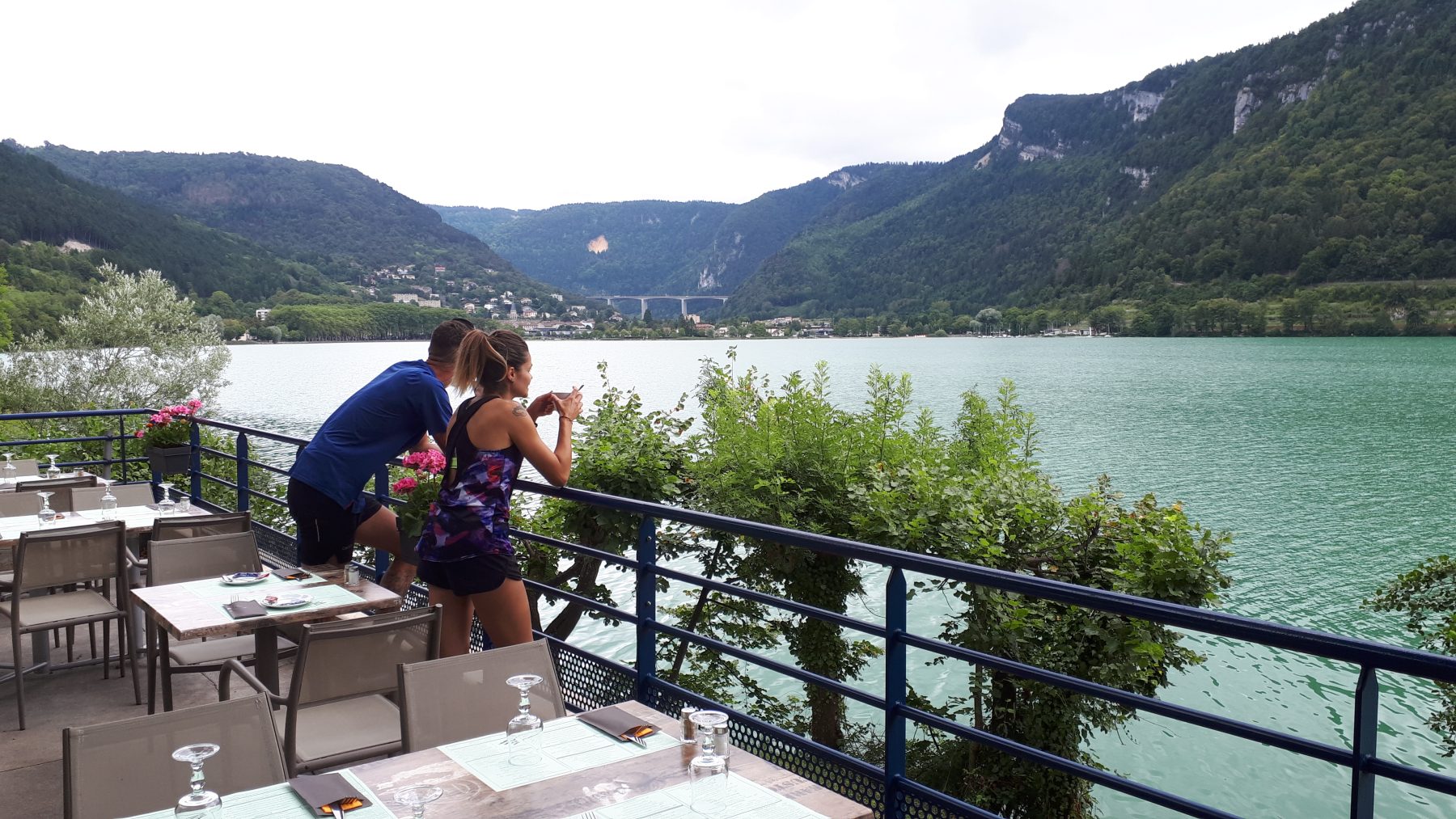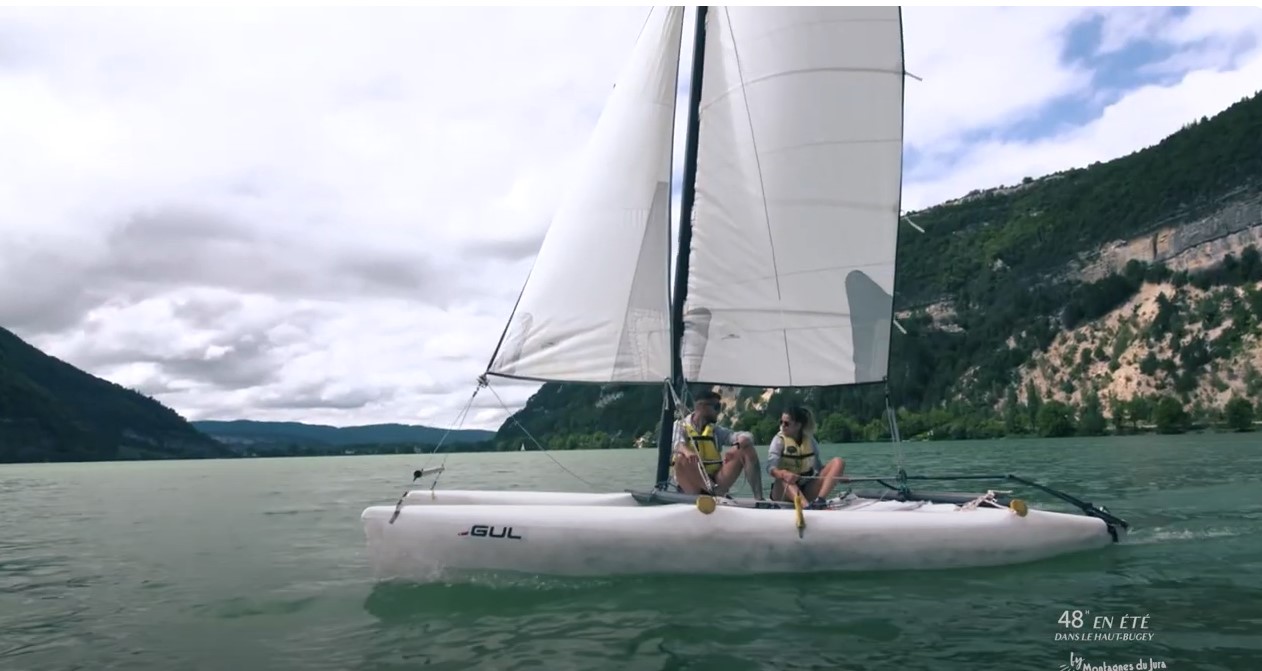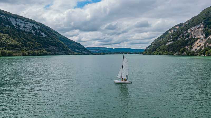 Cap sur Nantua, son lac enserré entre de hautes falaises, buts de randonnées aux vues panoramiques sur les sommets alentours… mais ce sera pour une autre fois. Nous avions le choix entre le canoë, le paddle, la planche à voile, mais nous avons préféré tester une activité plus fun, à deux : naviguer à bord d’un catamaran sur cette vaste étendue d’eau couleur vert émeraude et avoir l’impression d’être seuls au monde.