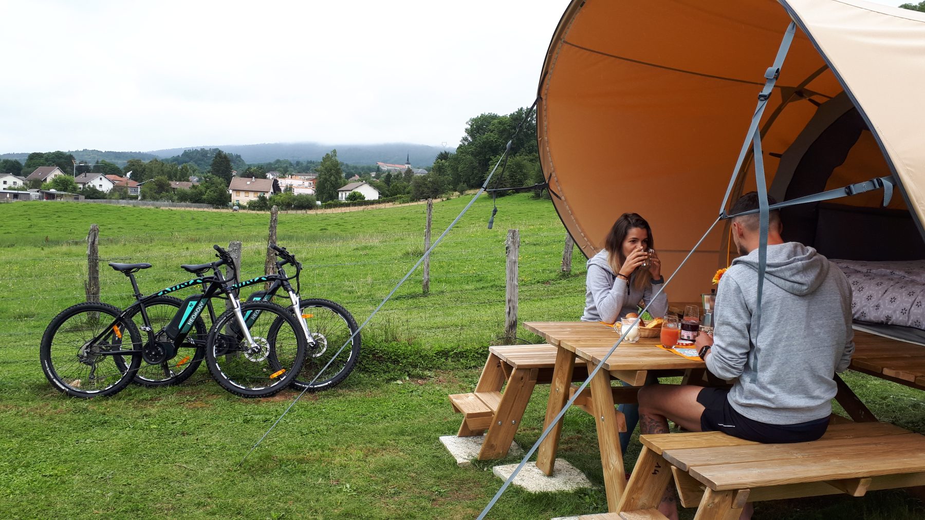 Encore un bon repas réconfortant pour terminer cette première journée de déconnexion avant de passer la nuit dans un cocon de douceur au plus proche de la nature : la tente cocoon du camping des 12 cols porte bien son nom avec son lit confortable, sa lumière tamisée et son esprit cosy. Au matin, petit plongeon dans la piscine du camping, puis sortie VTT vers l’étang des Lésines, histoire de se mettre en forme pour de nouvelles expériences.
