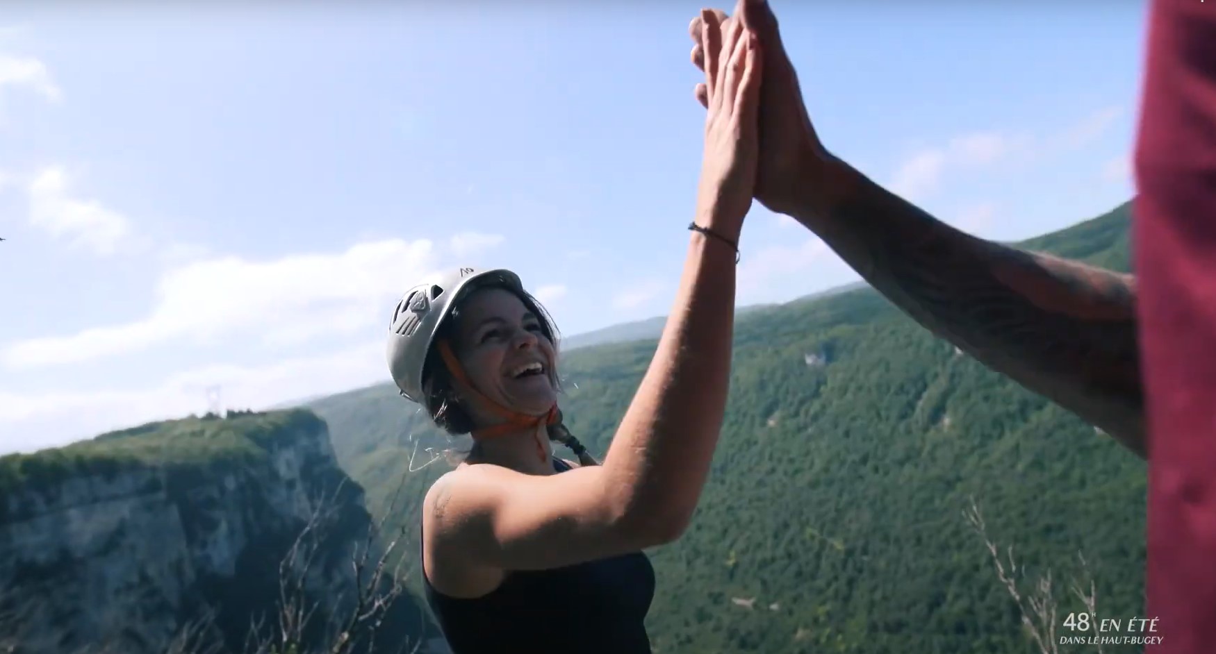 On commence fort en défiant la peur du vide sur la via ferrata de la Guinguette. Rien de tel qu’un petit coup d’adrénaline pour détoxifier le corps. Grâce à notre guide attentionné, ça passe tout en douceur, et quel spectacle : d’immenses falaises calcaires, un relief accidenté couvert de forêts denses, une vallée profonde… et la cascade de la Charabotte, la plus haute du département de l’Ain. L’effet « waouh » était au rendez-vous !