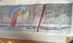 La maquette originale de la mosaïque du lac (2 m × 70 cm), conçue par GRATALOUP en 2014 et restaurée par Milena GRATALOUP