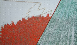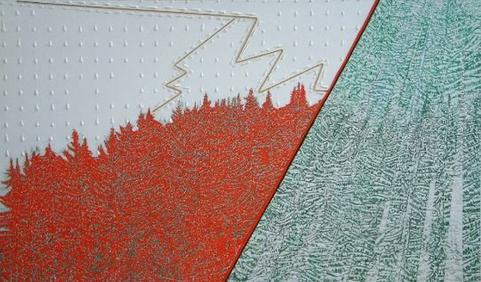 Les reproductions à taille réelle sur dibond de plusieurs œuvres : Nantua Lumineux, Nantua Lunaire, Nantua Chromatique et Paysage aux Sapins foudroyés