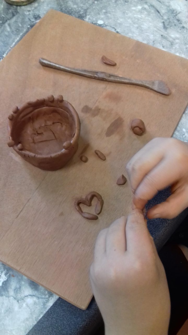 Après cette immersion, place à la pratique ! Les participants se transforment en apprentis potiers et mettent la main à l'argile. Ils s'initient à la technique du colombin (une méthode de façonnage utilisée avant le tour de potier) pour fabriquer leur propre pot. Une fois la forme créée, les enfants libèrent leur imagination. Ils utilisent de petits outils pour décorer et personnaliser leur œuvre. Chaque participant repart avec sa création en argile, un souvenir concret de son voyage au temps d'Isarnodurum !